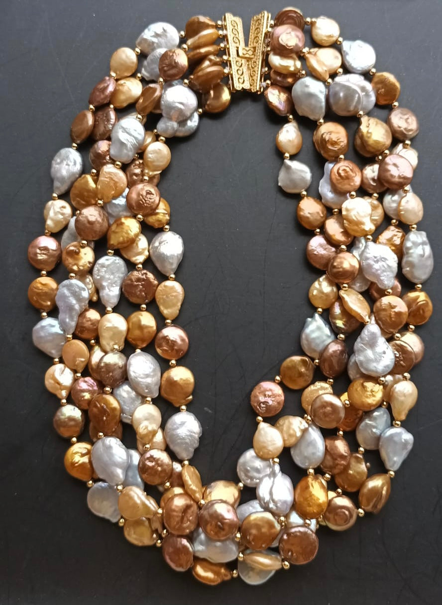 -Necklace is made with fine quality multi coloured fresh water coin pearls