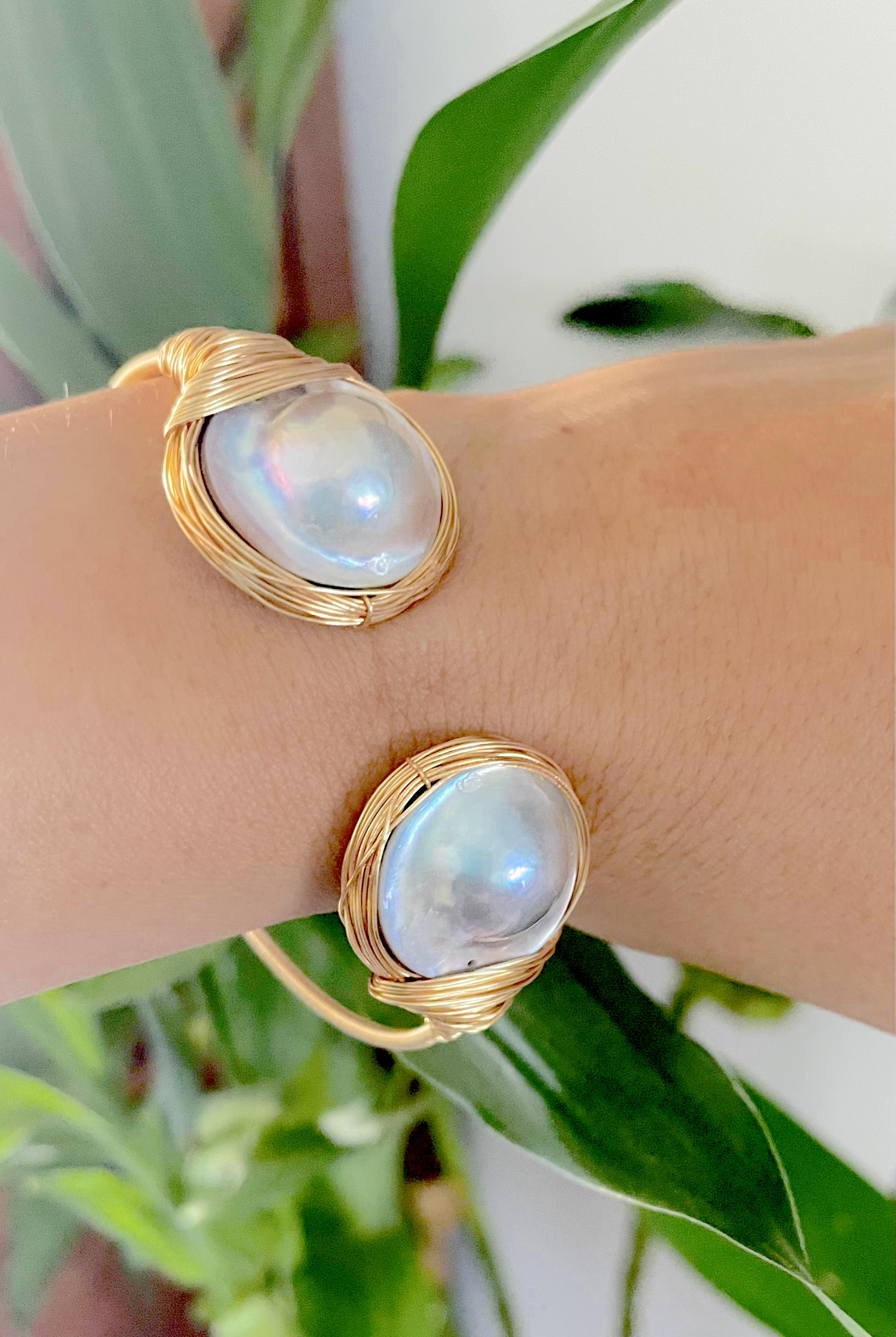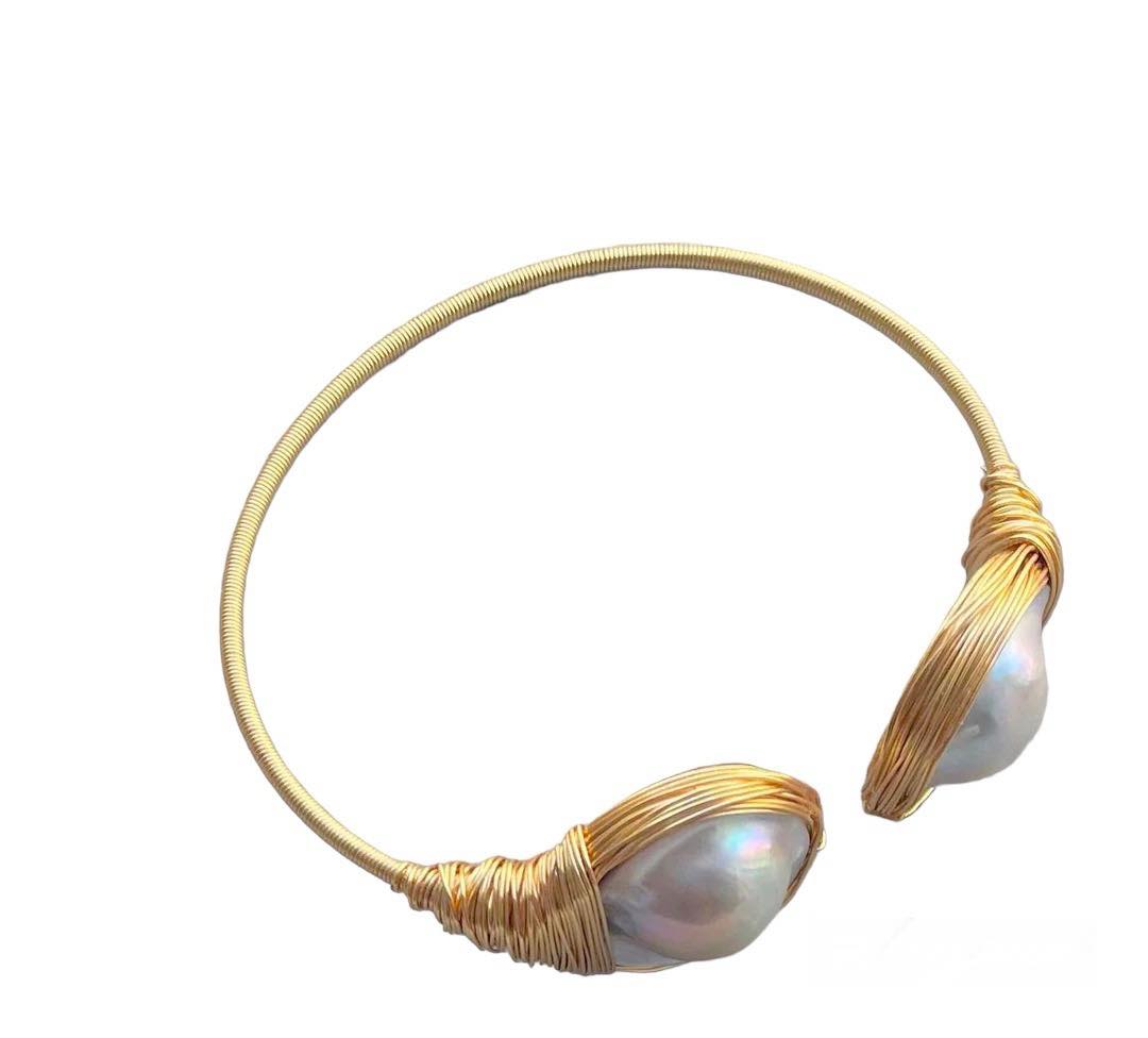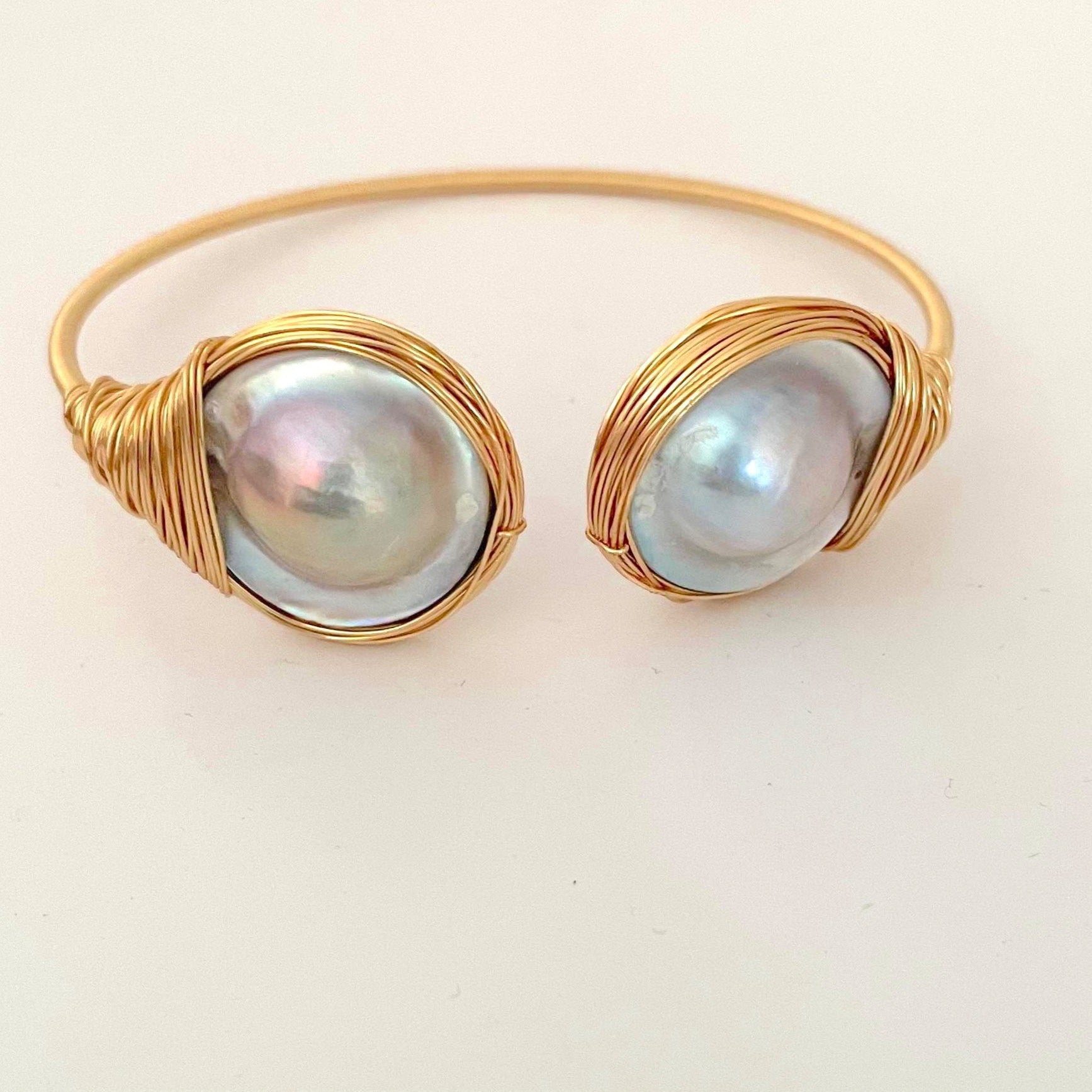 -Lustrous blue mabe pearl bangle