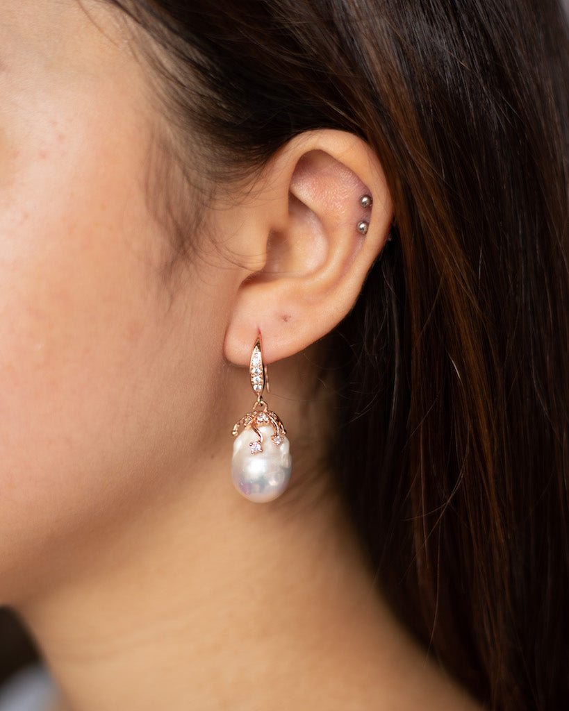 Tags: classic baroque earrings, rose gold setting