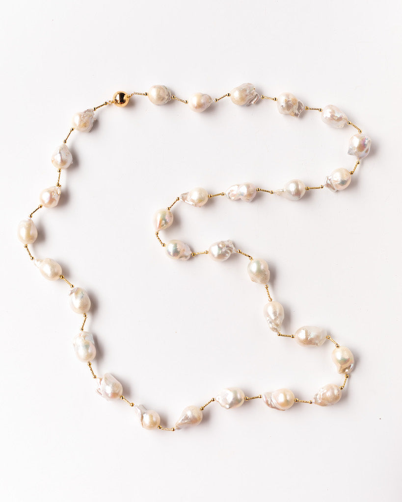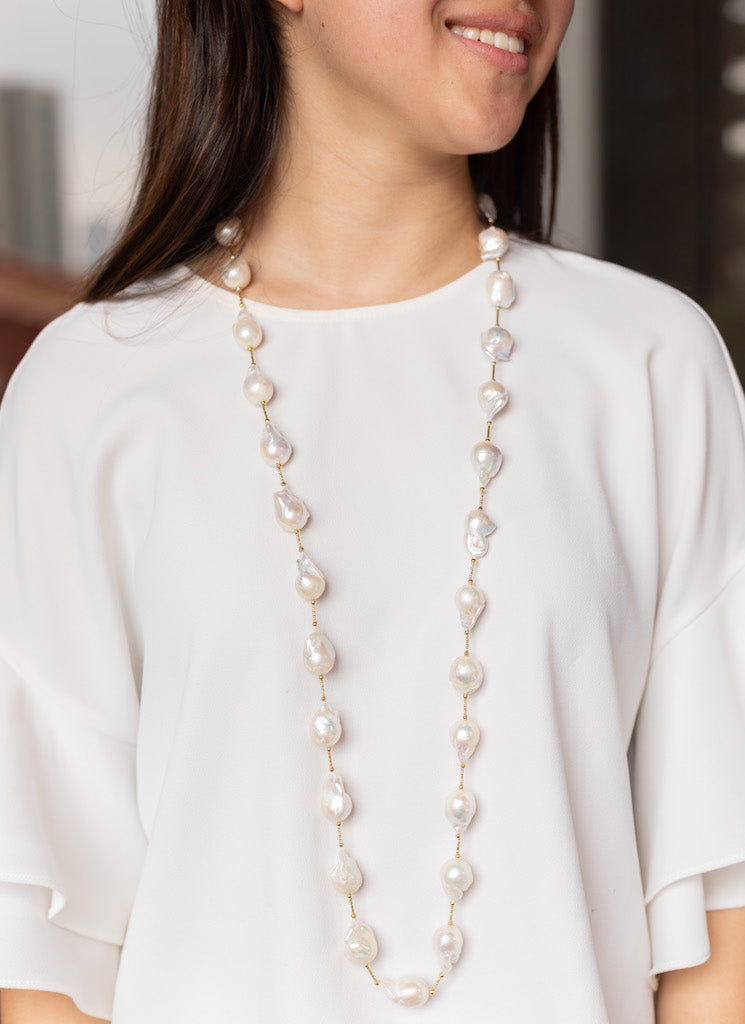 CLASSIC WHITE BAROQUE NECKLACE WITH GOLD WIRE