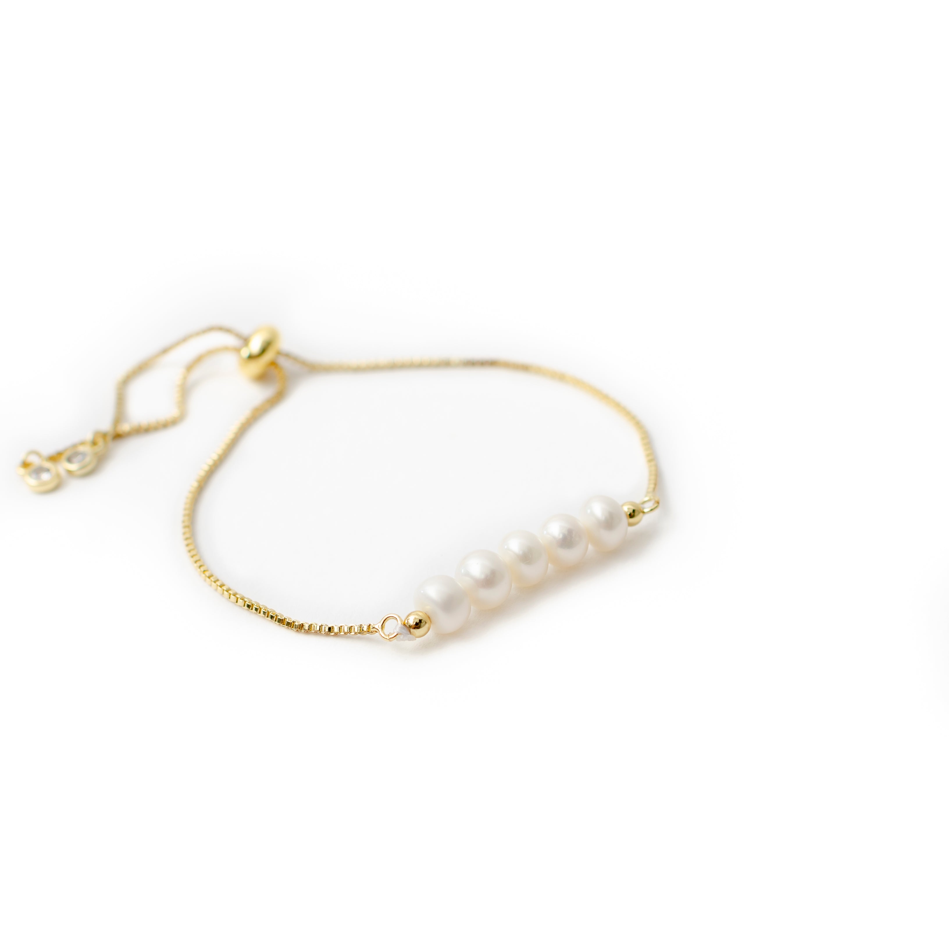 -Beautiful white fresh water pearl bracelet with 18K gold plated chain