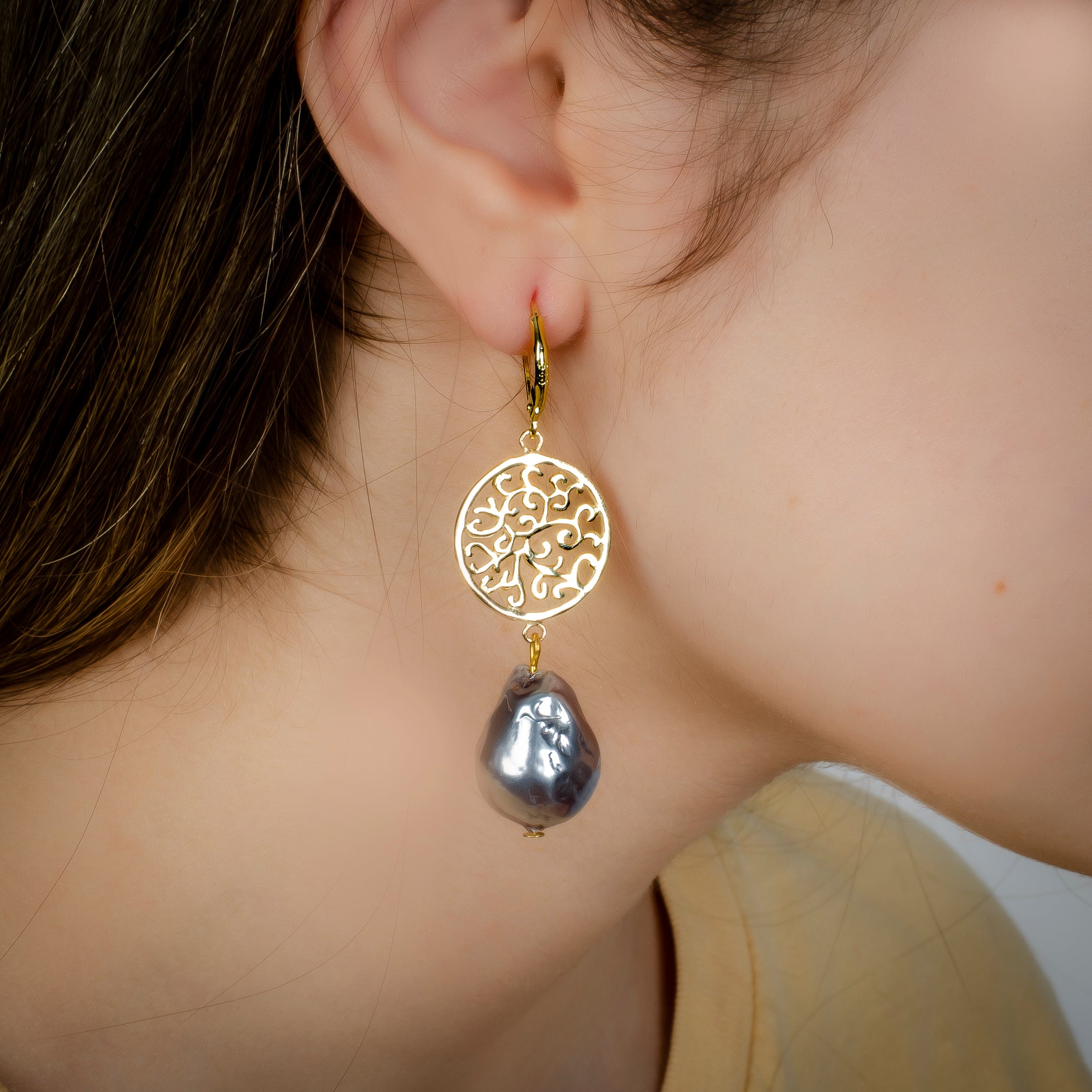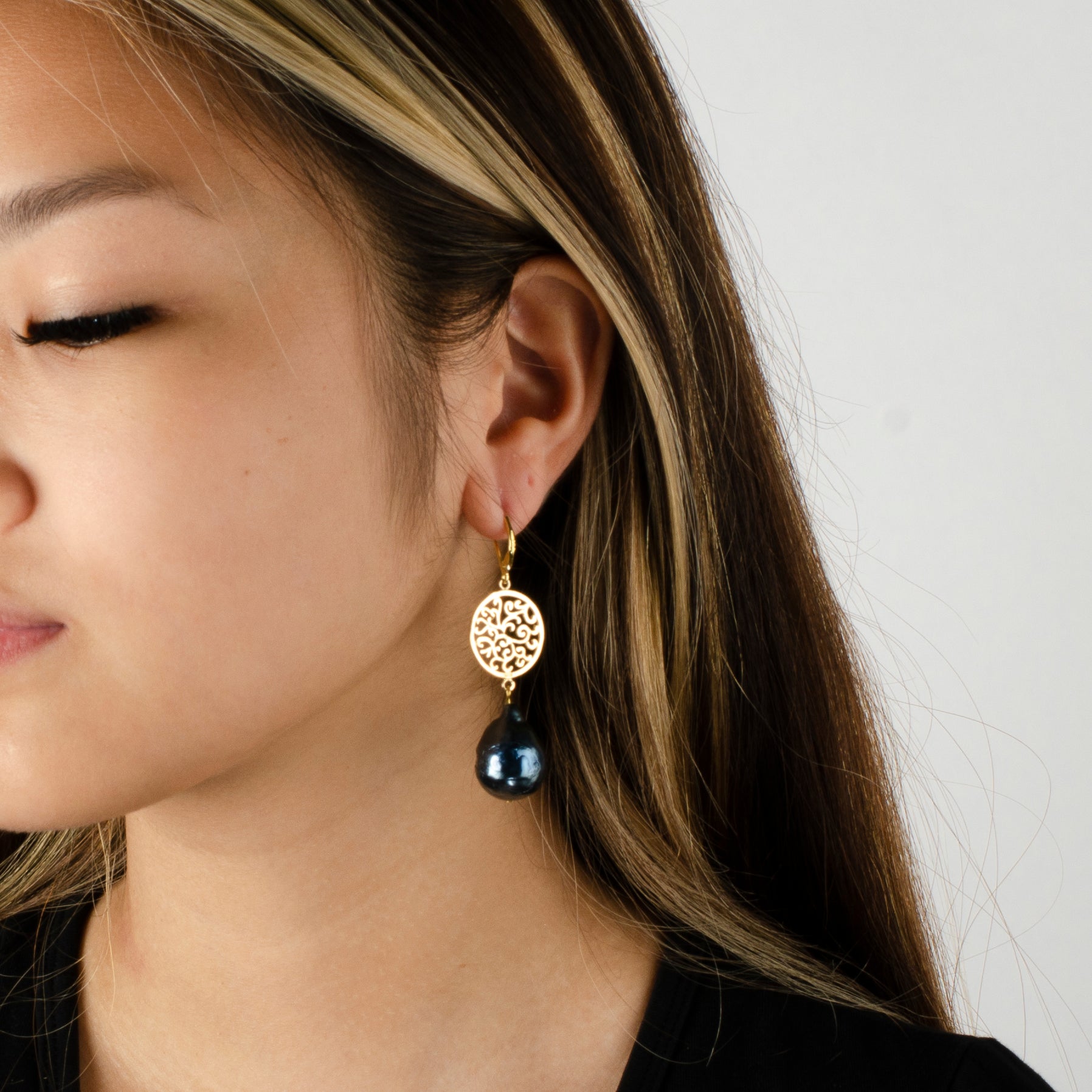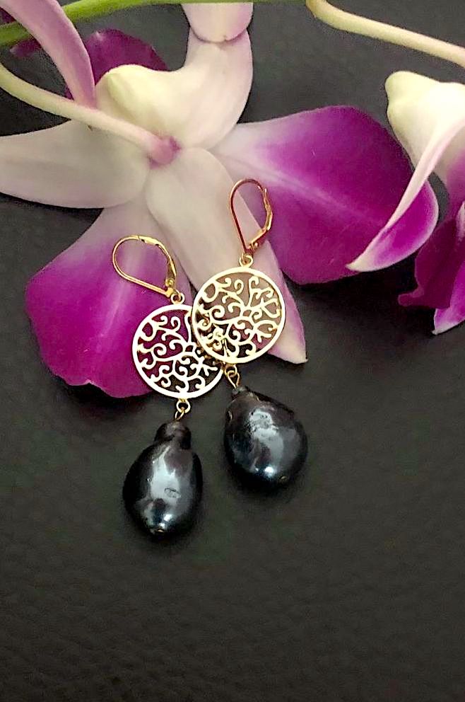 GOLD FILIGREE WITH BLACK PEARL