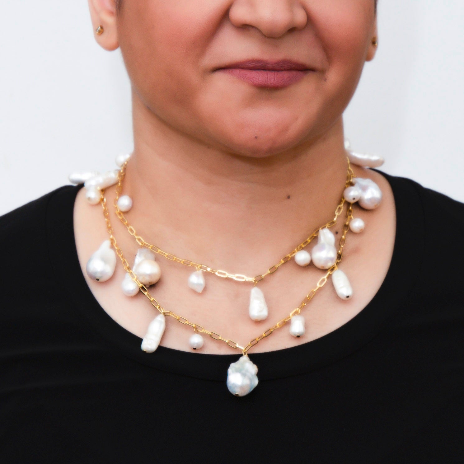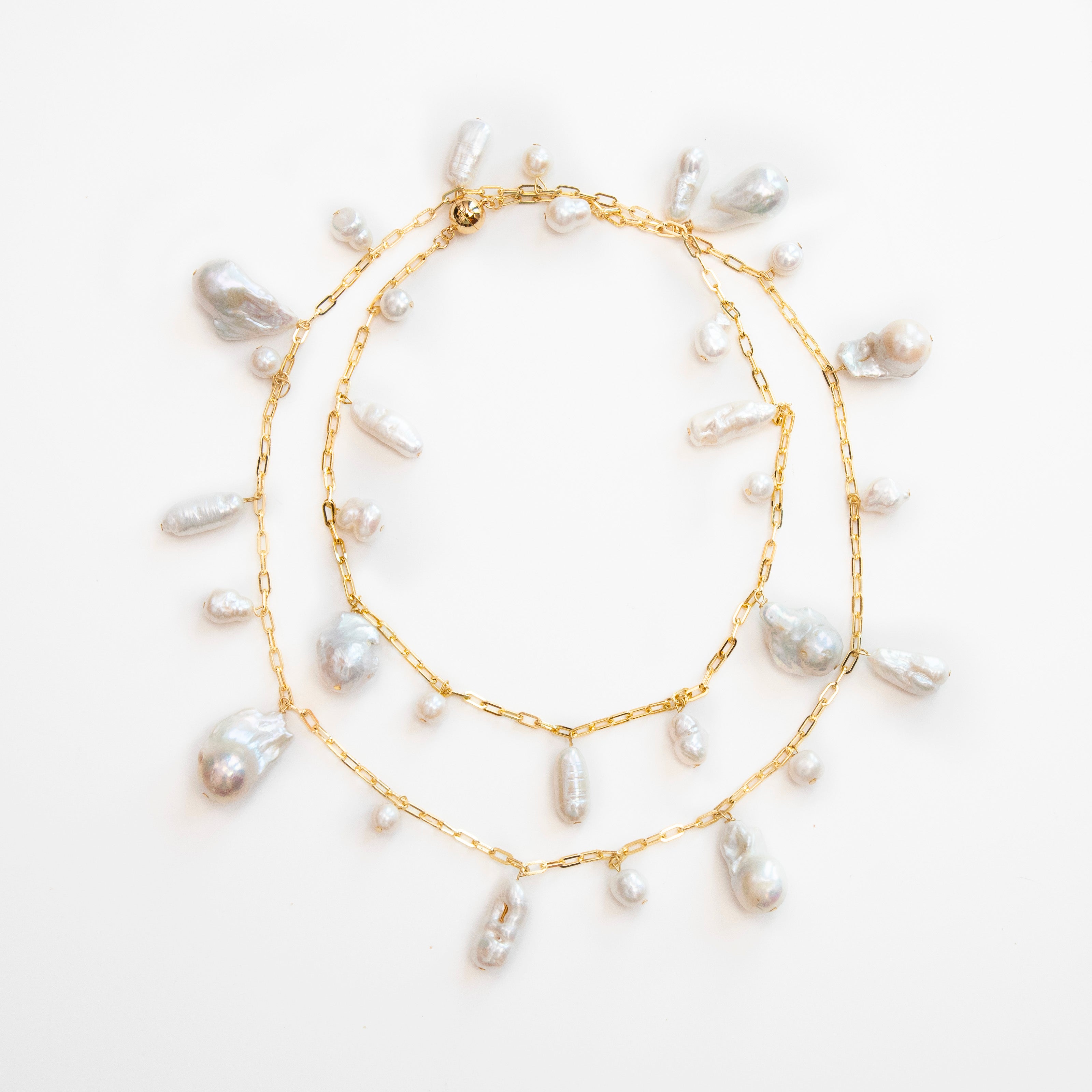 Tags: baroque pearl and loop necklace, white pearl necklace