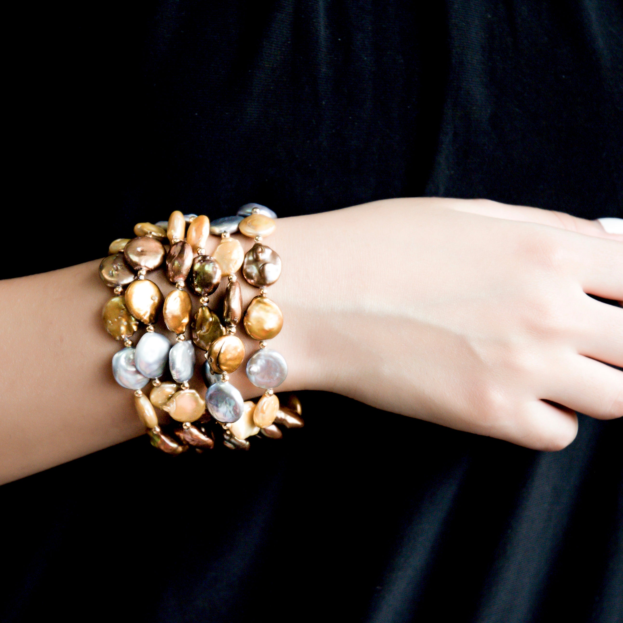 -Classic coin pearl with deep shades of fresh water pearls