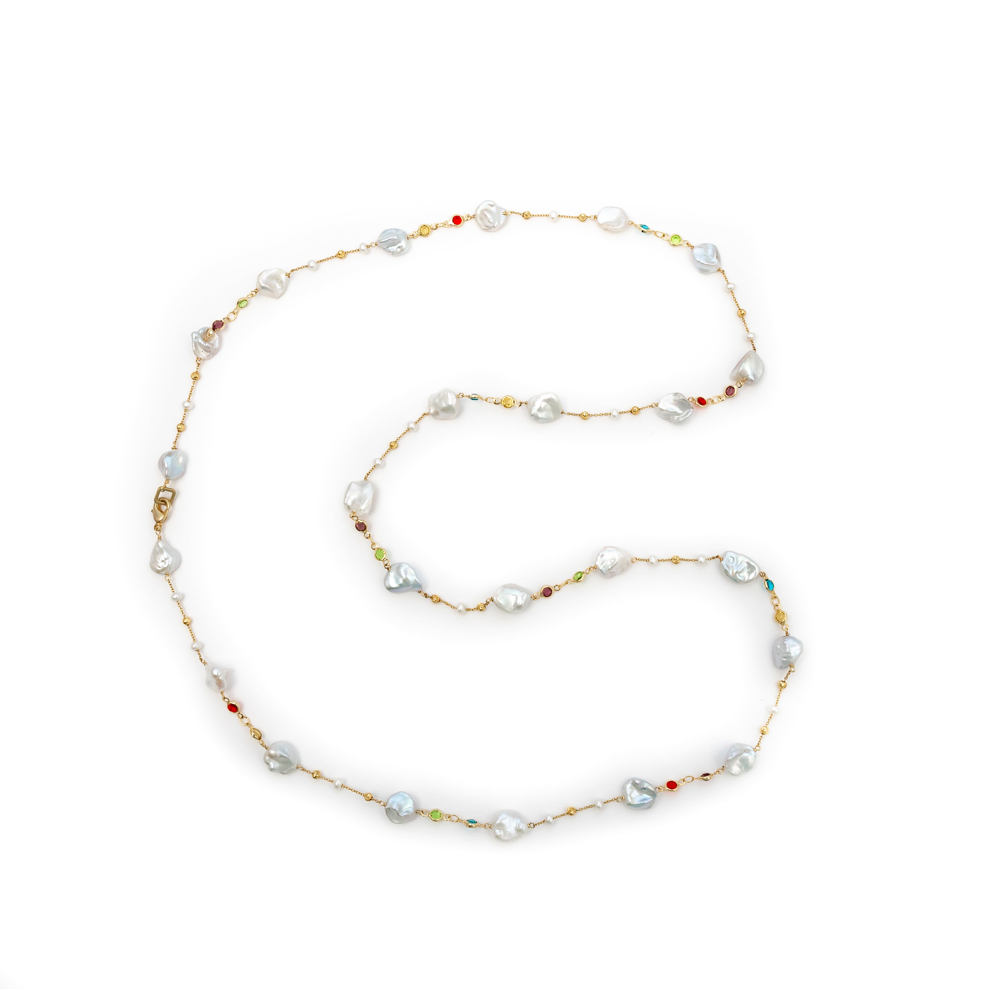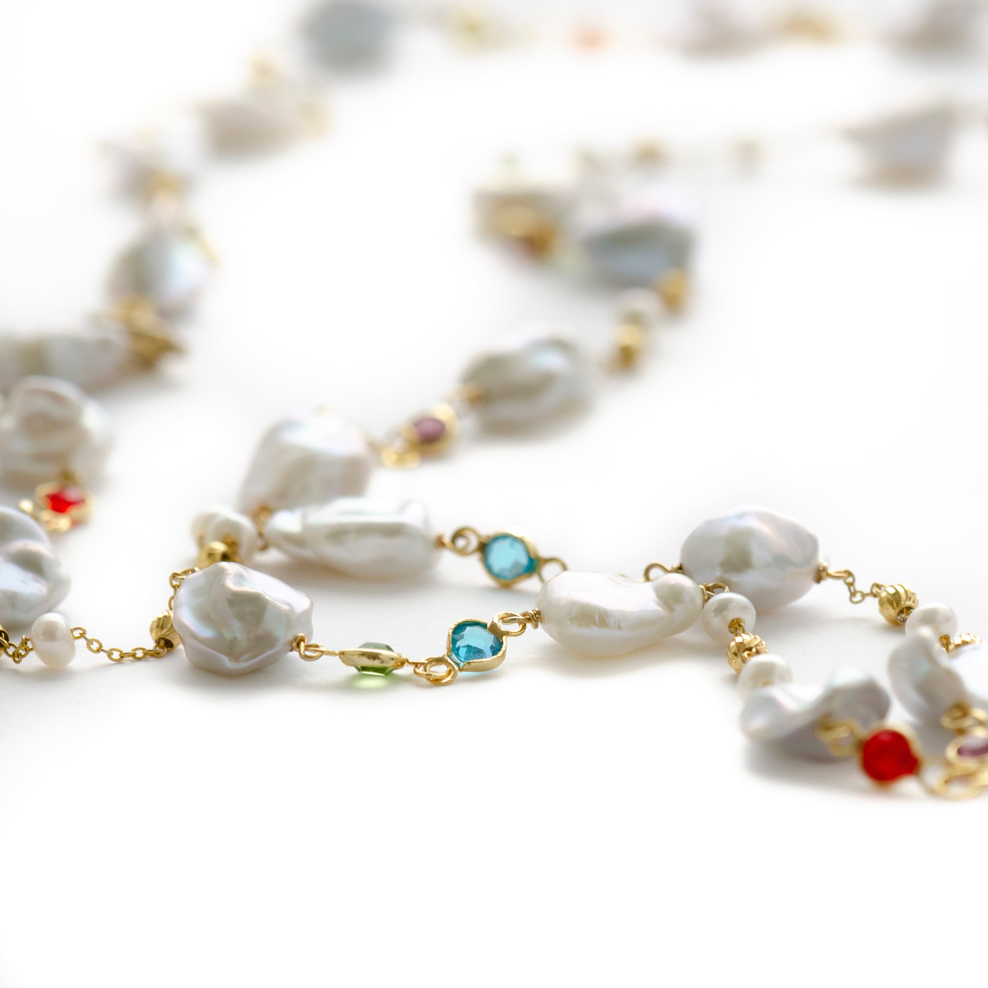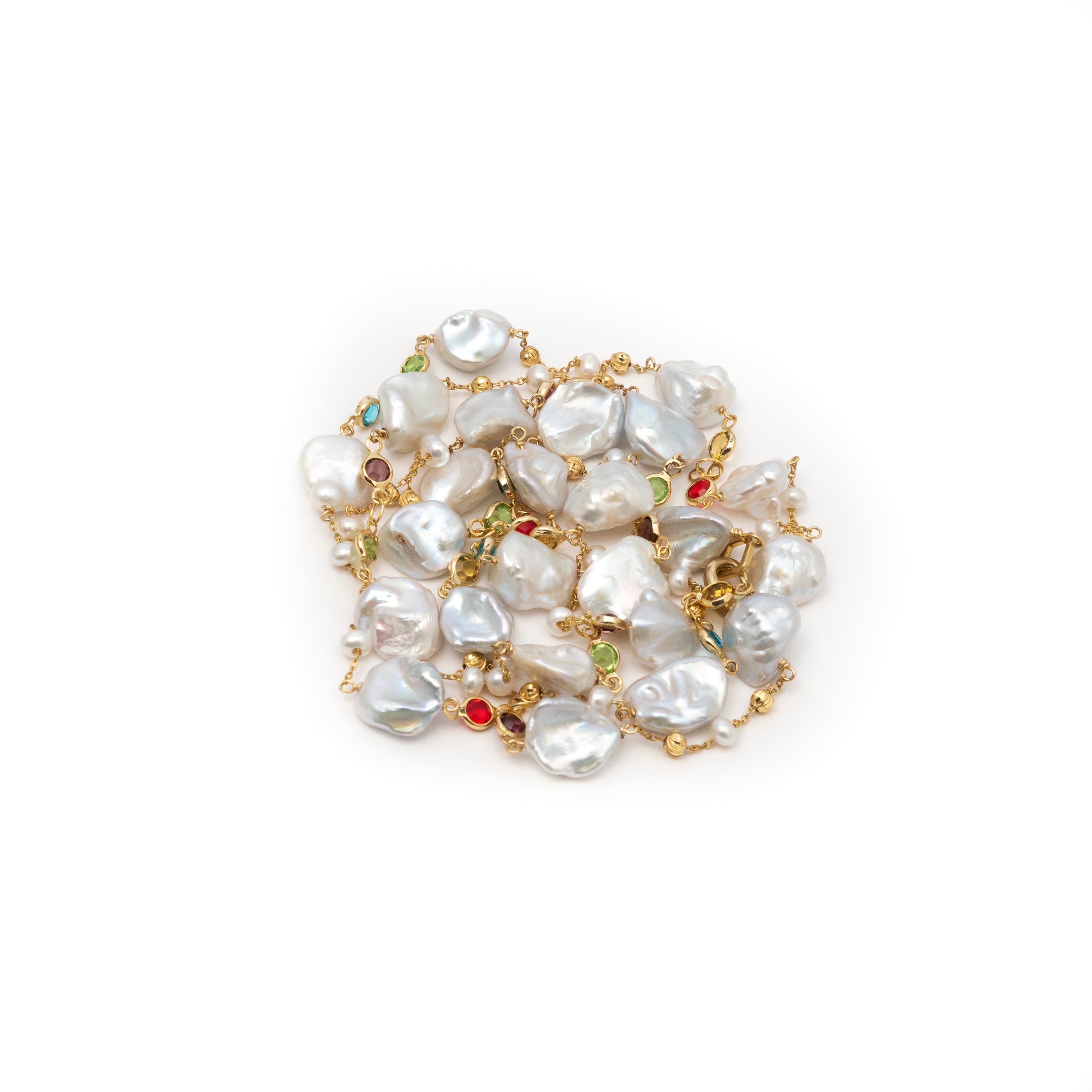 -Handmade with white keshi pearls and multi gem stones