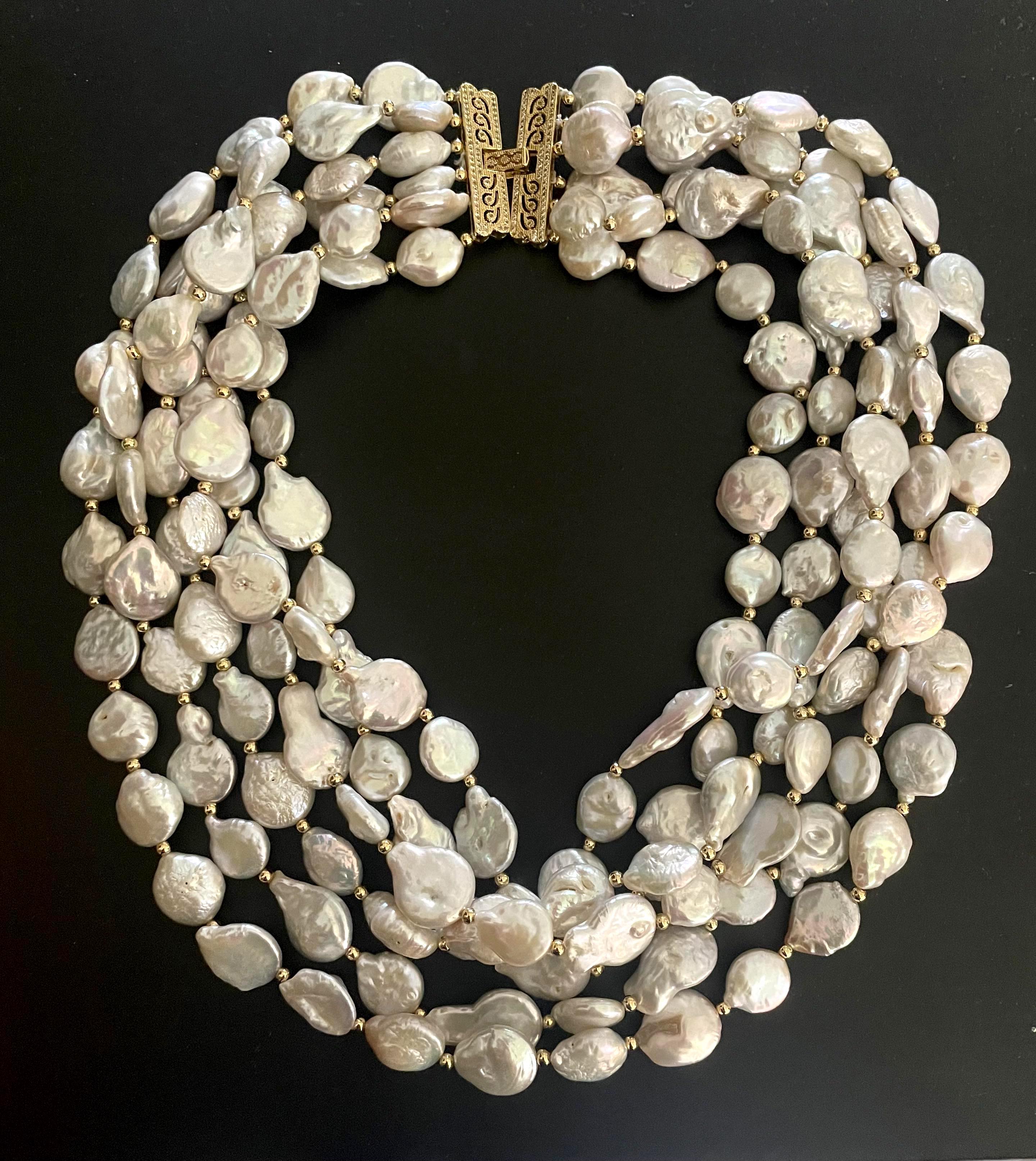 SIX TIER WHITE COIN PEARL NECKLACESIX TIER WHITE COIN PEARL NECKLACE
