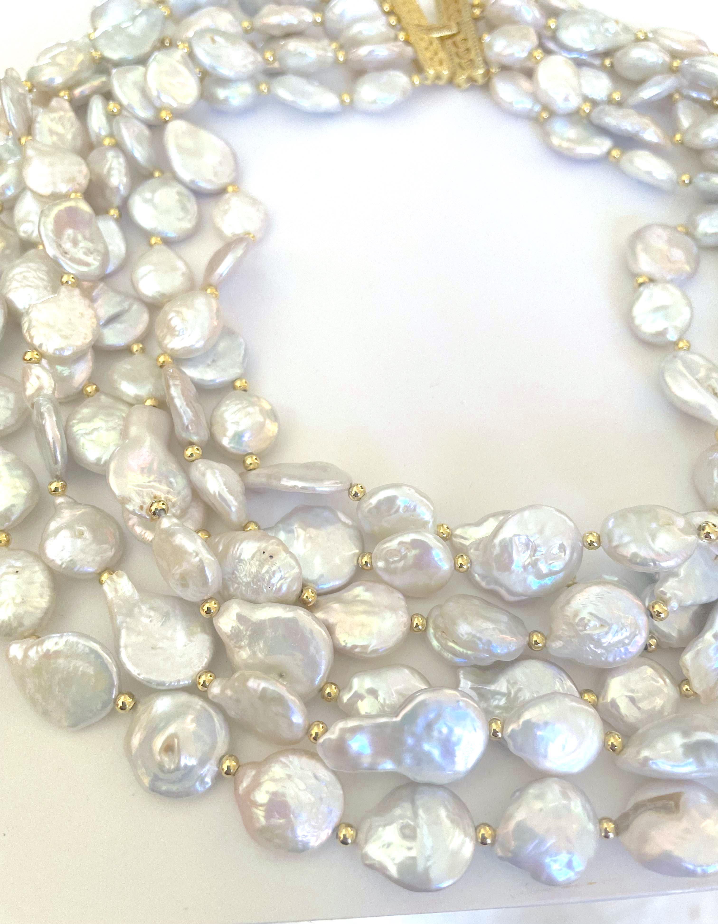 -Necklace is made with fine quality white fresh water coin pearls with gold bead in between each pearl