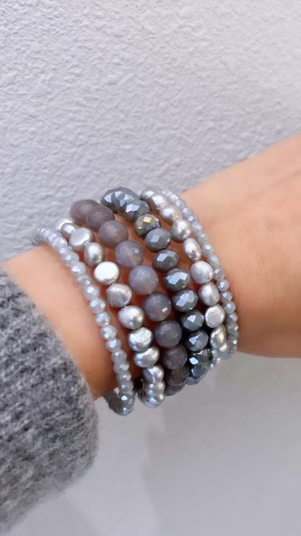 -All pieces are hand strung on a silver wire -Bracelet is one size that can fit all sizes