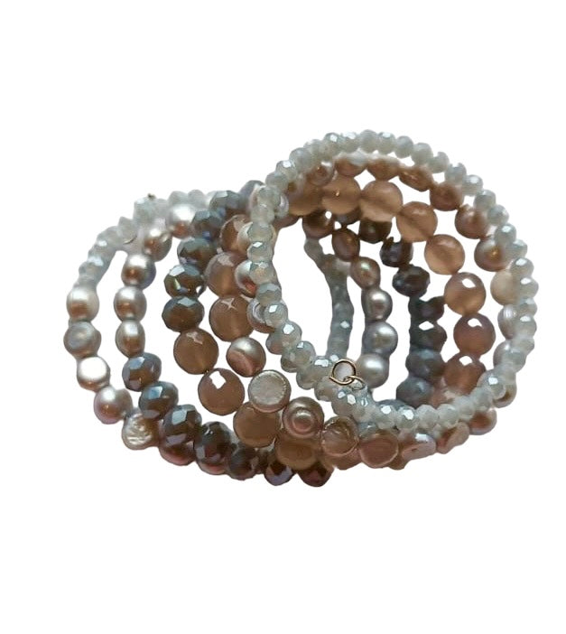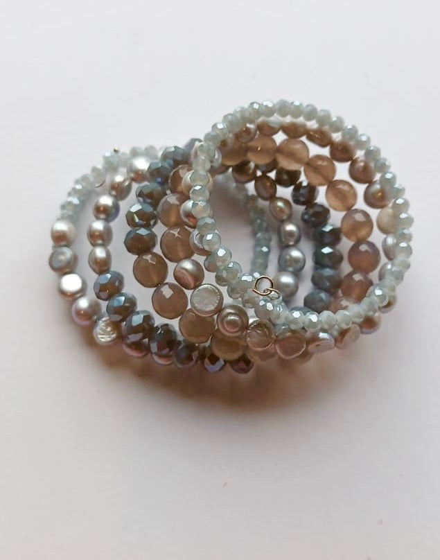 -Classic pearl spiral bracelet with fresh water pearls, agate and crystals