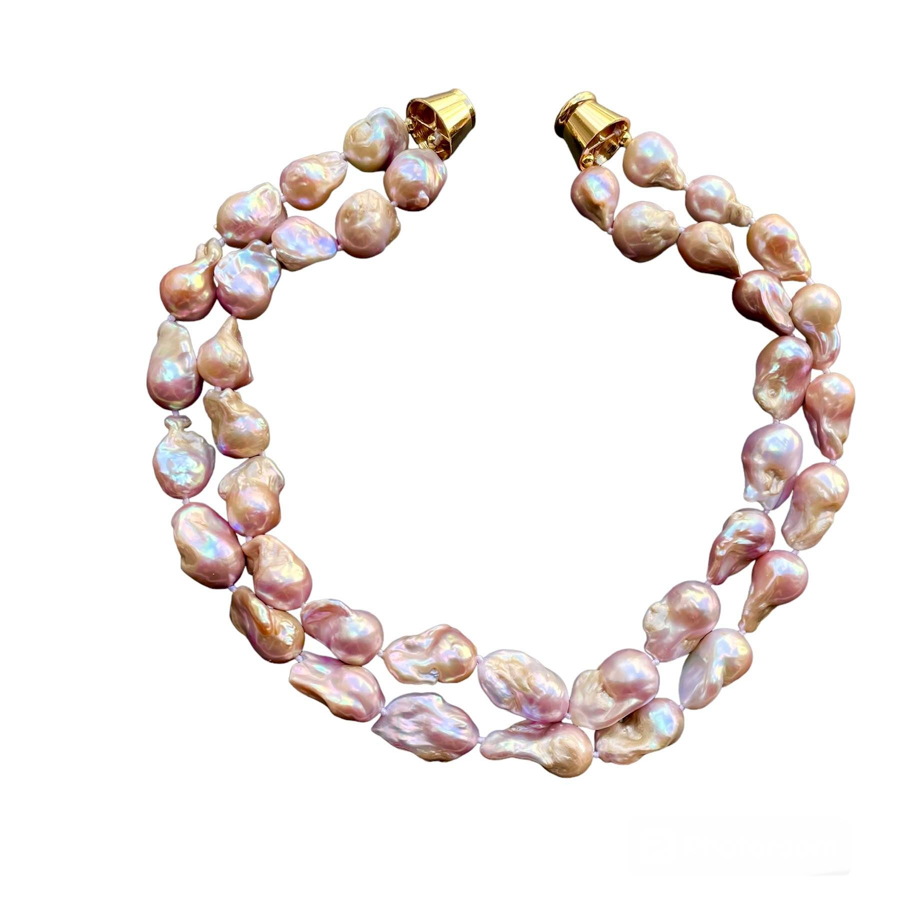 TWO TIER PINK BAROQUE PEARL NECKLACE