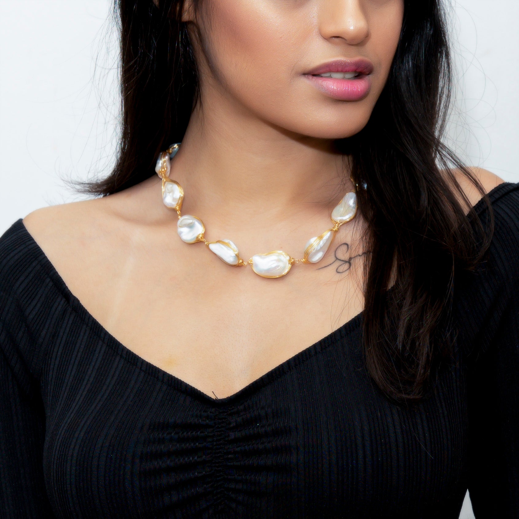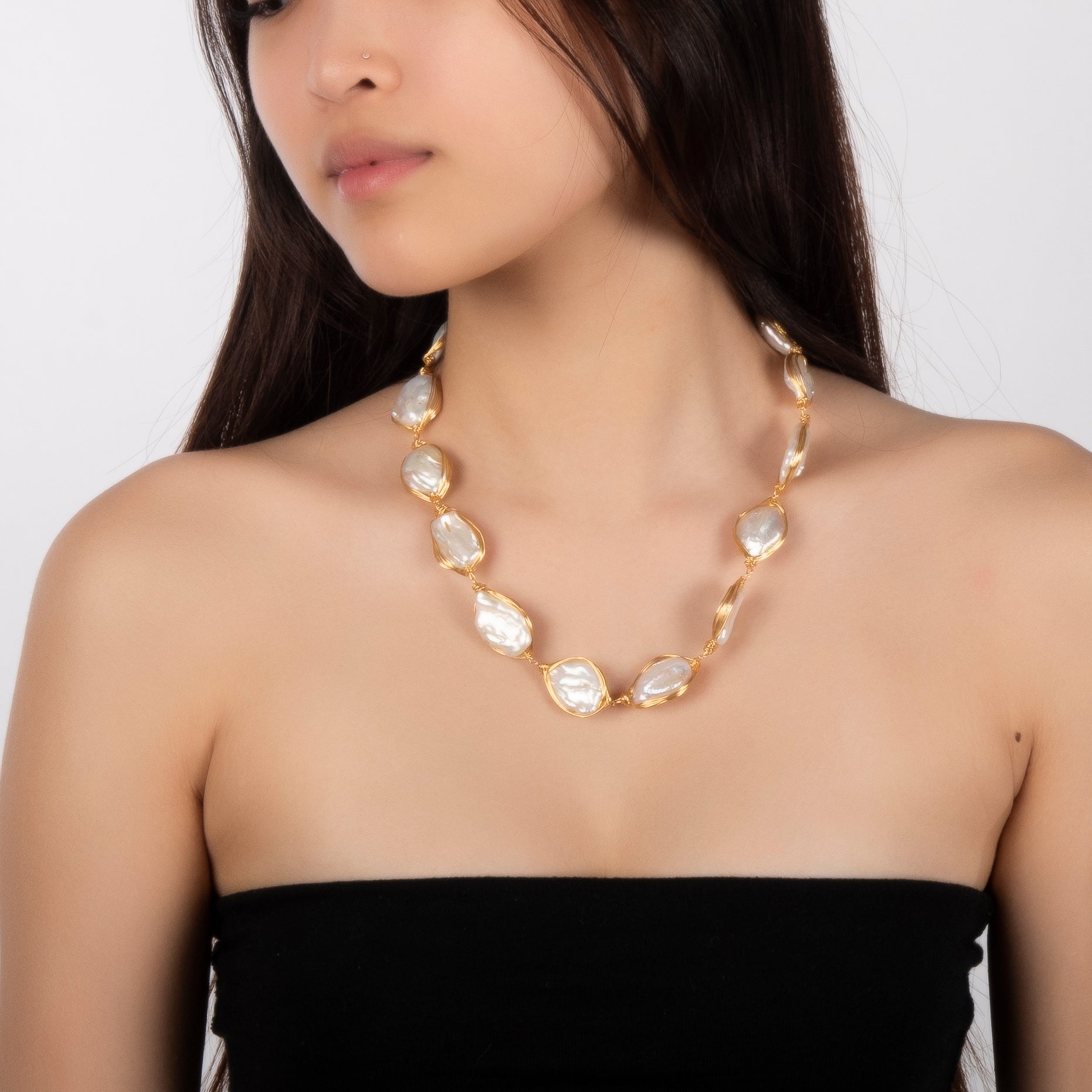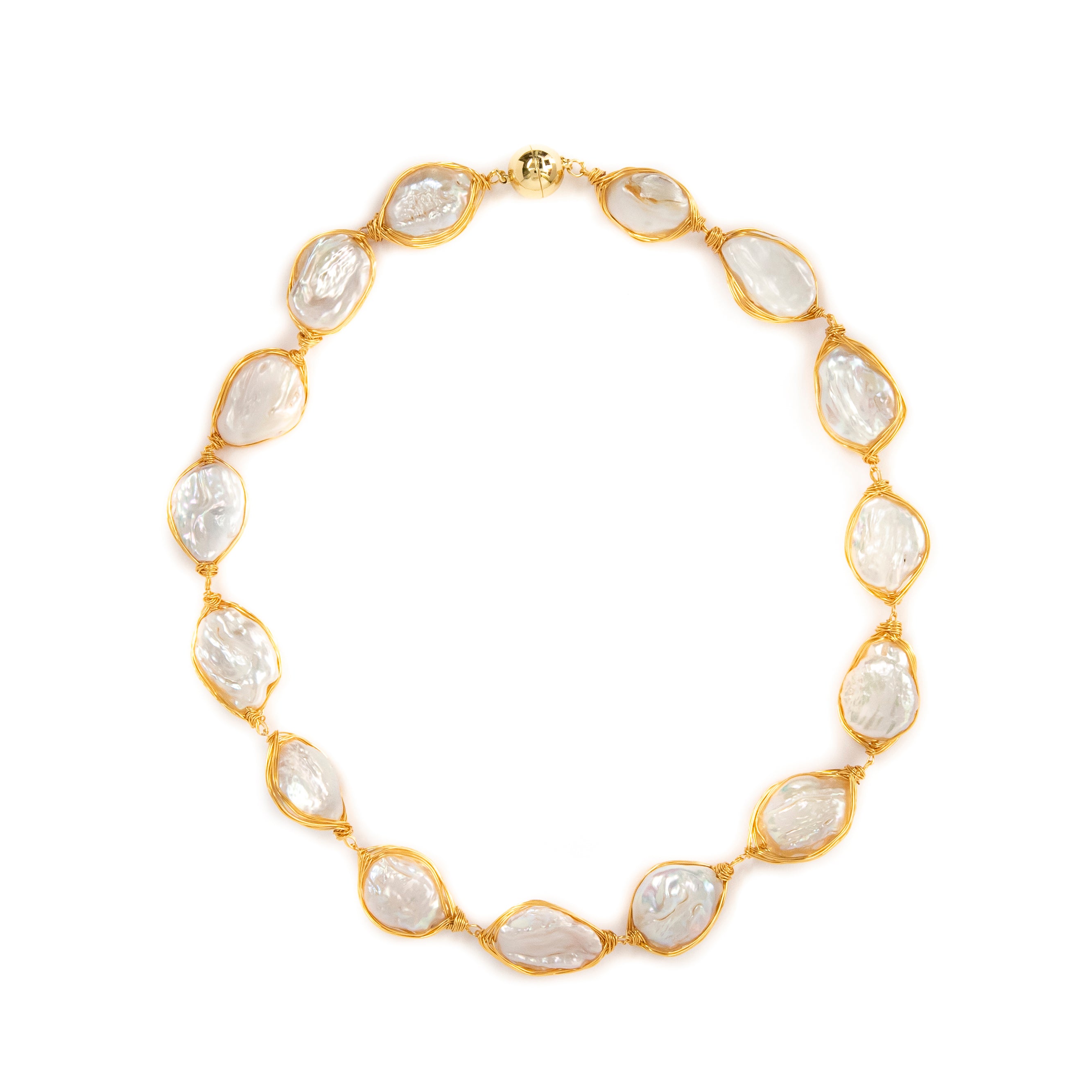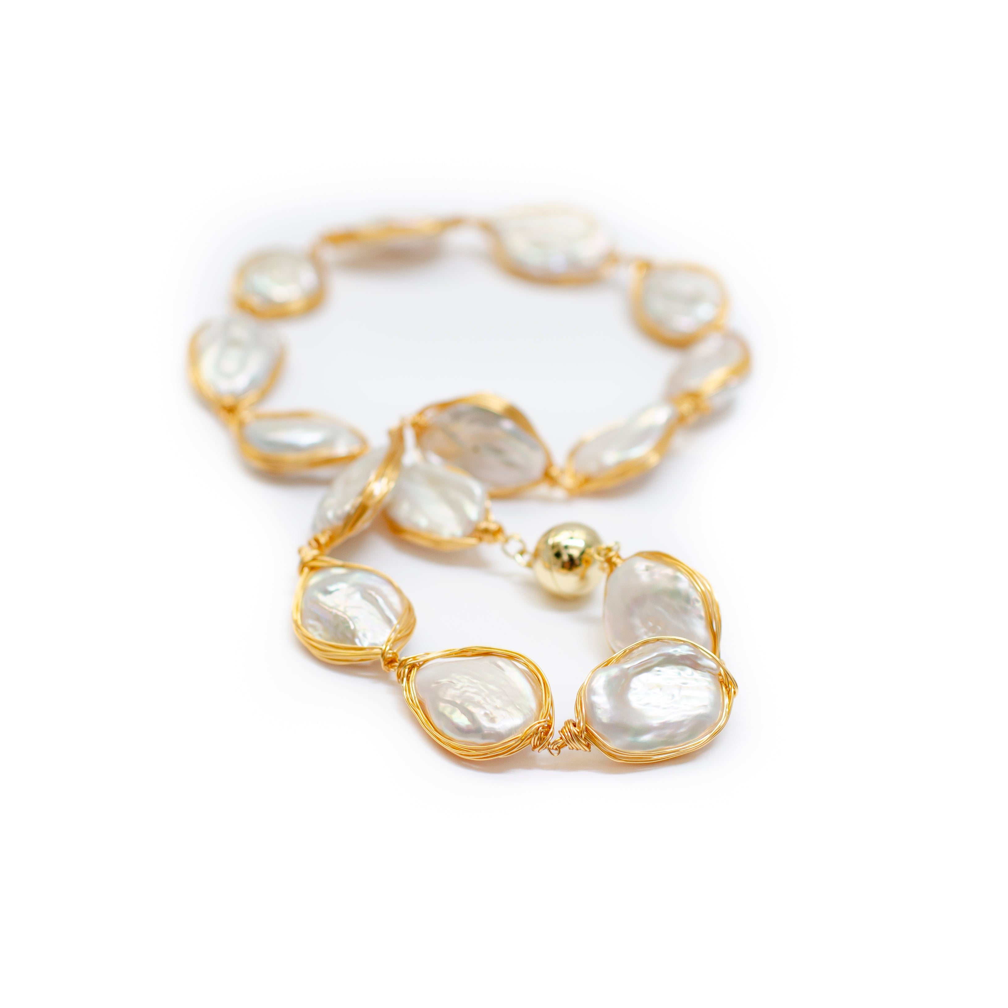 WHITE FLAT BAROQUE WITH GOLD WIRE