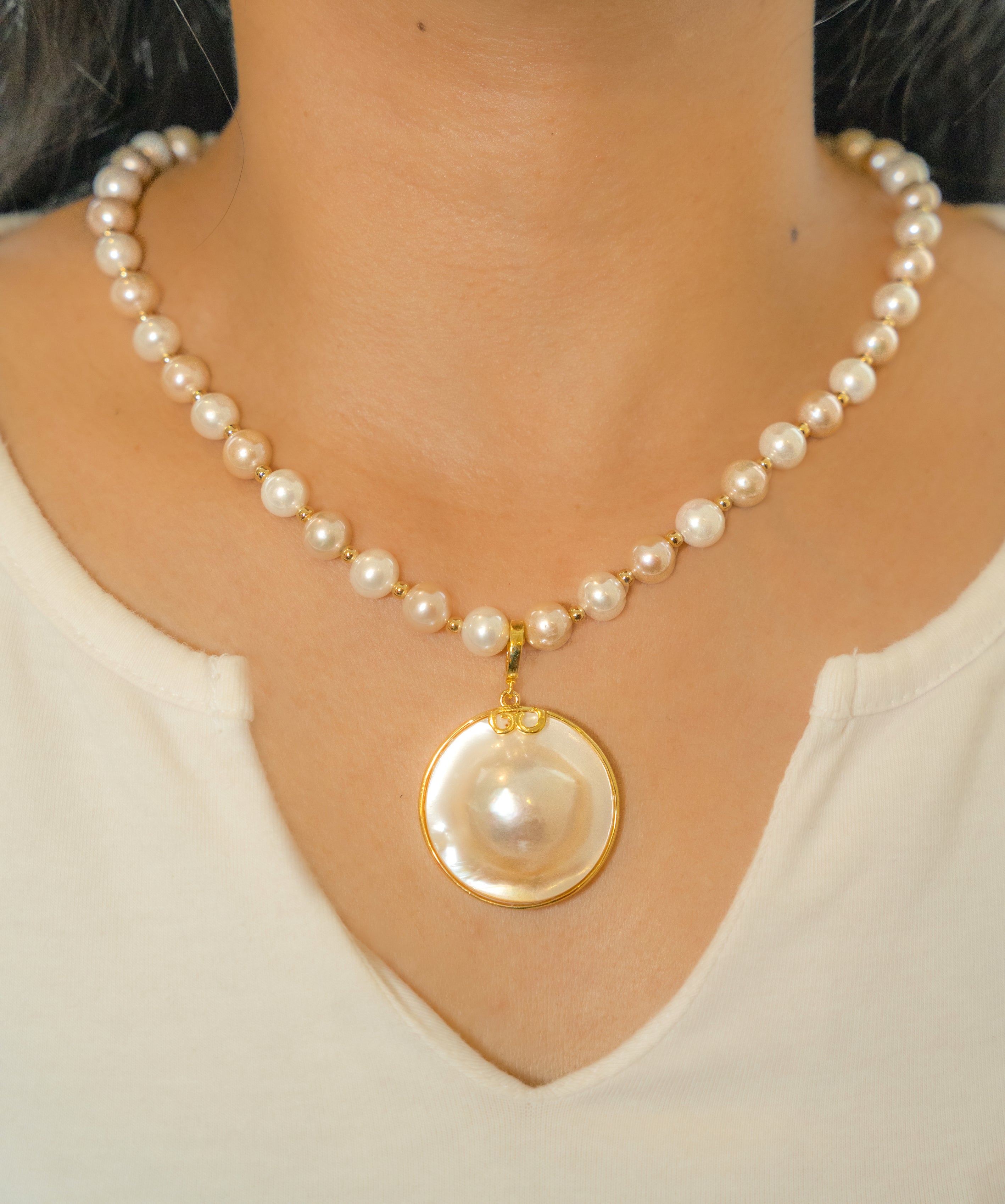 WHITE MABE PENDANT NECKLACE